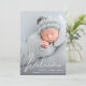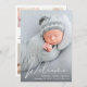 Um simples anúncio de nascimento com a foto do seu recém-nascido com uma sobreposição de "Bem-vindo" em um roteiro branco de na moda. Adicione o nome do seu bebê, data de nascimento e estatísticas de nascimento. No verso, adicione três imagens adicionais e uma mensagem personalizada.
