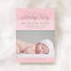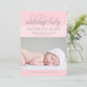 Anuncie o nascimento de sua bebê com este elegante cartão de anúncio de nascimento "Boas-vindas Bebê". Caligrafia fluida em cinza pérola quente situada acima de uma faixa que exibe o nome do seu recém-nascido, data de nascimento, peso e comprimento. Um fundo rosa suave emoldura sua foto favorita para um visual atemporal e feminino. A cor do fundo e todo o texto são totalmente personalizáveis para combinar com sua imagem.