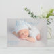 "Bem-vindo" anúncio azul de nascimento de foto azul do bebê. Um sentimento tão bonito. Avise a todos que seu novo bebê batendo chegou.