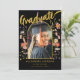 Comemore a conquista da sua filha na faculdade, universidade ou segundo grau com um incrível Cartão de Anúncio de Graduação de Fita do Formando de Flor Selvagem. Essa na moda moderna design capta a essência da ocasião, com elegante caligrafia de guião dourada num fundo negro impressionante, belamente complementada por um arco de flor silvestre de aquarela branca. A frente do cartão exibe a palavra formando em roteiros de caligrafia na moda dourada e o nome e a graduação da sua filha em tipografia dourada moderna, enquanto o verso oferece espaço para informações adicionais em elegantes inscrições douradas modernas. O modelo de foto incluído torna a personalização do cartão com uma imagem tesourada do seu formando sem esforço, criando uma manutenção única. Criada com uma obra de arte original pela artista Catherine Sweetman, esta carta é um refinado e na moda tributo à sua conquista, perfeita para compartilhar seu marco importantíssimo com amigos e familiares.
