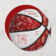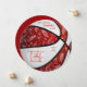 Este belo convite para celebração de basquete apresenta a imagem realista de uma bola de basquete estilizada que recolheu painéis alternados de vermelho e branco - um padrão de rabiscos de paisagens, flores e penas em cobrir brancos os painéis vermelhos da bola - personalize com seus detalhes de festa - por katz_d_zynes