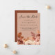 Anúncio de Boho Terracotta Tom Terroso Botânico Salve a Data - O anúncio apresenta uma paleta de cores terrosas com flores e folhagens em negrito. Salve a Data está em uma fonte de letra moderna e encantadora. Salve a Data faz parte de uma coleção.