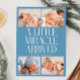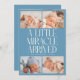 Modern Christmas theme birth announcement card featuring a bold typography text that says "a little miracle arrived" with 4 of your newborn pictures. This is a birth announcement card for the holiday seasons! Add your pictures, birth stats, and a message! The background is denim blue.