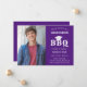 Anuncie sua formatura em 2025 e convide seus convidados do partido em estilo com este cartão postal personalizado de CHURRASCO fotográfico. Este design moderno apresenta uma tipografia branca em roxo, acentuada por uma ilustração de um boné de formatura branco. Personalize com seus detalhes de graduação e convite de festas. Parabéns pela sua formatura! Desenhada pela artista Susan Coffey.