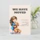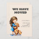 Cartão de anúncio giro e bonito com ilustração de uma garota e seu cachorro. Ilustrada e projetada por Patricia Alvarez.