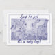 "Salta para a alegria! É um menino bebê!" lê a frente deste anúncio bonito e único com o meu trabalho de arte de coelho de coelho azul macio. As costas mostram uma grande foto do seu bebê, "Salta para a alegria!", e o nome do bebê, as estatísticas de natalidade e os nomes dos pais orgulhosos. (Você pode mudar a relação dos nomes parentais adicionados aos de um pai solteiro, avós, padrinhos ou outros parentes ou amigos orgulhosos, se desejar.) É fácil personalizar usando o botão Personalizar e modelos de texto. Arte e design originais peculiares, únicas, de Tuzi Williams.