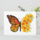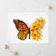 Borboleta de monarca laranja com asa decorada com papoila amarela e vibrante da Califórnia em fundo branco.