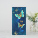 Ouro voador, borboleta de joias em fundo textural azul. Design com borboletas.