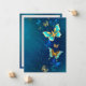 Ouro voador, borboleta de joias em fundo textural azul. Design com borboletas.