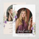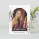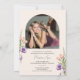 This photo graduation announcement is accented with peach and purple flowers and lush greenery. The elegant layout includes space for two photos and is adorned with delicate handwritten script. Personalize the back with graduation announcement and future plans.