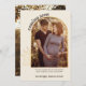 Anúncio personalizado de nascimento de fotos em creme neutro em sexo, castanho e ouro. O modelo de foto está configurado para você adicionar 2 fotos - uma na frente, que é moldada em um arco dourado com folhagem fina e, uma foto de retrato sangrado no cheio, no verso. "em breve" está escrito em letras negrito, tipografia arquivada e o restante do texto é totalmente editável para você personalizar com sua mensagem personalizada, data de vencimento do bebê e nome(s). Uma design moderna e chique para compartilhar as maravilhosas notícias de sua gravidez.