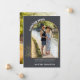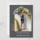 Anúncio personalizado de nascimento de fotos em cinzas neutras em relação ao gênero, branco de inverno e ouro. O modelo de foto está configurado para você adicionar 2 fotos - uma na frente, que é moldada em um arco dourado com folhagem fina e, uma foto de retrato sangrado no cheio, no verso. "em breve" está escrito em letras negrito, tipografia arquivada e o restante do texto é totalmente editável para você personalizar com sua mensagem personalizada, data de vencimento do bebê e nome(s). Uma design moderna e chique para compartilhar as maravilhosas notícias de sua gravidez.