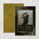 Esses belos cartões de anúncio de noivado são uma maneira maravilhosa de informar aos amigos e familiares que vocês vão se casar. O design elegante em preto e dourado apresenta sua foto em uma moldura dourada de folha falsa, rodeada por cachos e espirais dourados ornamentados. O título diz "Estamos Noivos!" com espaço para seus nomes e uma nota curta. O verso é uma cor dourada marmorizada profunda.