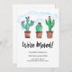 Este cartão de anúncio comovente é decorado com cactos de aquarela, céu azul e tipografia na moda. Facilmente personalizável com seu novo endereço. Use a Ferramenta Design para alterar o tamanho, o estilo ou a cor do texto. Você não encontrará esta imagem exata de outros designers enquanto criamos nossa trabalho de arte. Original Watercolor © Michele Davies.