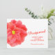 Cartão de adiamento de casamento com data a ser remarcada com uma arte de flor de camélia vermelha em aquarela na frente e sua própria mensagem e foto dos noivos no verso. Outros itens de primavera combinando disponíveis. Arte e design em aquarela por Sarah Trett www.sarahtrett.com para www.mylittleedenweddings.com