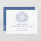 Um cartão de cancelamento de casamento é parte do jogo de casamento do monograma de folha desenhado à mão azul correspondente. Ideal para usar como cartão de informação de casamento para informar seus convidados sobre um casamento ou cancelamento de evento, ou reagendamento devido a doença ou circunstâncias imprevistas. Design simples circulando suas próprias iniciais de monograma design. Em tons bonito de médio clássico a azul escuro e branco. Outros itens correspondentes e opções de cor estão disponíveis. Arte original e design por Sarah Trett para www.mylittleedenweddings.com