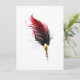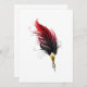Caneta antiga, desenhada artificialmente, embelezada com pena vermelha escura sobre fundo branco.