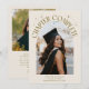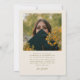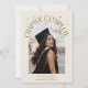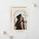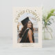 Cartão de foto de anúncio de formatura moderno e caprichoso com uma foto emoldurada em arco na frente e 1 no verso. O texto diz "Capítulo Completo" com estrelas desenhadas à mão. Adicione o nome do graduado, informações e mensagem para personalizar este cartão. Fundo creme.