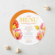 Celebre o seu casamento com estes cardápios modernos e elegantes. Este cardápio temático de papoulas em tons de pêssego, amarelo e rosa é personalizável com os seus próprios detalhes.