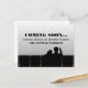 Cartão postal simples e encantador de "Salve a Data" de cinema em cinza, apresentando um casal adorável sentado em uma sala de cinema e o homem apontando de forma divertida para as palavras na tela. Este design exclusivo de salve a data é perfeito para o casal que gosta de assistir filmes juntos e adoraria incorporar esse interesse compartilhado em sua papelaria de salve a data. Fácil de personalizar, basta adicionar os detalhes do seu casamento nos espaços fornecidos. Clique no botão "Personalizar" para encontrar opções adicionais de personalização.