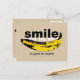 Arte gráfica: Banana orientada para formar um sorriso + pequeno texto entre parênteses: (é bom para a saúde). Perfeito para quem continua sorrindo ano após ano. Design em cartão postal de convite com textos para 50º Aniversário Salve a Data para personalizar. Você pode facilmente alterar o texto (fonte, cor, tamanho e posição) clicando no botão personalizar. Convite de aniversário, livros de visitas de aniversário (capa dura e caderno espiral), guardanapo de papel de aniversário, prato de papel e muito mais...