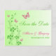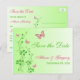 Este cartão postal de aviso de data com flores rosa quente e verde primavera tem borboletas e flores rosa e verde SIMULADAS que combinam com o convite de casamento mostrado abaixo. Se você precisar de outros itens correspondentes neste design, envie um e-mail para niteowlstudio@gmail.com.