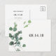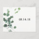 Cartão postal de aviso de data de casamento com folhas em aquarela.