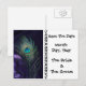 Use estes cartões postais de casamento com pavão roxo para informar aos seus amigos e familiares sobre o seu recente noivado e para salvar a data do seu casamento. Esta fotografia de penas de pavão roxo ainda em vida nos seus cartões de aviso de data de casamento irá adicionar um toque especial ao seu casamento temático de pavão e tornar tudo perfeito