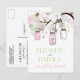 Cartão postal de aviso de data de casamento com potes de pedreiro rosa, verde menta e azul e flores