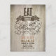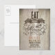 Cartão postal de aviso de data antigo estilo rústico rural - COMA, BEBE E SE CASE. Aviso de data perfeito para casamento em celeiro