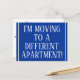 Este design tradicional de cartão postal de mudança de endereço apresenta a mensagem "ESTOU MUDANDO PARA UM APARTAMENTO DIFERENTE!" na frente, e uma mensagem personalizável no verso. Cartões postais como este podem ser usados para informar amigos e familiares que o remetente mudou para uma nova casa.