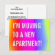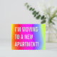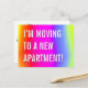 Este divertido design de cartão postal de casa nova apresenta a mensagem "ESTOU ME MUDANDO PARA UM NOVO APARTAMENTO!" na frente, e uma mensagem personalizável no verso. Cartões postais como este podem ser usados para informar amigos e familiares de que o remetente tem um novo endereço.