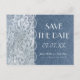 Cartão postal de casamento Save The Date rústico em ganga e renda. Personalize com qualquer texto. Itens correspondentes disponíveis.