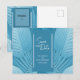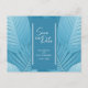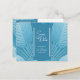 As folhas tropicais criam um apelo moderno e cativante para este casamento, exceto os cartões postais datados. Apresenta tons de cores reais. Utilização para complementar temas de casamento tropicais e eventos especiais utilizando o azul lacrimogênio como cor focal. A parte traseira da placa acomodará uma foto. Há também um código QR que você pode usar para seu site de casamento, RSVP, registro de casamento (entre outros). Use a modelo para personalizar.