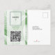 Planejar um casamento ou evento especial? Estes cartões postais de anúncio verde tropical oferecem um apelo divertido, mas clássico, para salvar os convites de data. Possui folhas verdes tropicais. Utilização para complementar temas de casamento tropicais e eventos especiais. A parte traseira da placa acomodará uma foto. Há um código QR que você pode usar para seu site, RSVP, registro de casamento (entre outros). O modelo também fornece o nome e o endereço de correspondência do destinatário para que ele seja impresso diretamente no cartão postal. Use a modelo para personalizar.