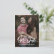 Cartão postal de data de casamento com foto totalmente personalizável com sobreposição de letra cursiva retrô. Este cartão de data de casamento com foto está disponível como ímã e cartão plano. Uma maneira perfeita de anunciar a data do seu casamento para familiares e amigos.