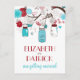 Cartão postal de data de casamento com potes de pedreiro vermelhos e azuis e flores