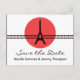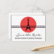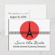 Cartão postal de data de salvamento com Pontos Mod Parisiense moderno e elegante, apresentando uma silhueta chic da Torre Eiffel, borda pontilhada e um círculo ousado em vermelho escuro. Este design moderno e minimalista seria perfeito para anunciar um casamento de destino a amigos e familiares. Fácil de personalizar, basta adicionar os detalhes do seu casamento nos campos fornecidos. Clique no botão "Personalize" para encontrar ainda mais opções de personalização.