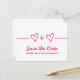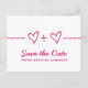 Cartão postal de data de salvamento da equação do coração fofo e caprichoso em magenta, apresentando uma divertida equação matemática que "une" dois corações/pessoas. Este design nerd é uma escolha encantadora para um casal que ama matemática ou qualquer casal que queira algo simples, mas com um toque de capricho. Fácil de personalizar, basta adicionar os detalhes do seu casamento nos campos de texto fornecidos. Clique em "Personalize" para encontrar mais opções de personalização.