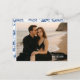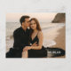 Procurando uma maneira elegante de anunciar o seu casamento? Este cartão-postal personalizável de "salve a data" permite que você faça o upload da sua foto de noivado favorita, mantendo o design sofisticado e moderno. Com uma disposição de tipos elegante que combina com roupas mais escuras e ambientes de praia, o verso apresenta um padrão azul de chinoiserie atemporal para um acabamento clássico. Perfeito para casamentos na praia, casais modernos ou qualquer pessoa que queira um toque refinado e pessoal.