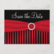 Este cartão postal de data de salvamento listrado de vermelho, preto e branco tem uma fita falsa vermelha e jóias correspondentes e combina com o convite de casamento mostrado abaixo. Se você precisar de outros itens correspondentes neste design, envie um e-mail para sua solicitação para niteowlstudio@gmail.com.