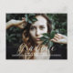 Cartão postal de formatura com foto de roteiro delicado moderno e elegante com um design simples de caligrafia manuscrita em branco. Este anúncio de formatura com tipografia elegante e sofisticada é fácil de personalizar com uma foto do formando e os detalhes da formatura. Encontre mais opções de personalização clicando em Personalizar.