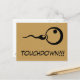 Cartão postal de gravidez legal. Um cartão postal de banda desenhada legal com esperma e ícone de ovo e o texto: Touchdown! A maneira perfeita e original de dizer aos seus amigos que você está esperando um bebê!
