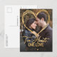 Quando você não tem uma data de casamento marcada, mas não pode esperar para dizer à sua família e amigos que você está noiva, você pode adicionar suas próprias fotos e texto a este moderno cartão de noivado elegante, para avisá-los das boas notícias, junto com a data e o lugar onde você se engajou. Há uma camada de ouro de dois corações na foto, assim como o texto do roteiro de ouro: "Dois Corações, Um Amor." Se precisar de ajuda para o design, ou se quiser combinar produtos ou outras formas de cores, contacte-me através do Zazzle.