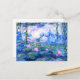 Um cartão postal de lírios de água rosa de Monet com belos lírios de água rosa flutuando em um lago azul calmo com folhas de lírio. Um ótimo presente de Monet para fãs de impressionismo e arte francesa. Impressionismo sereno da natureza com lindas flores e paisagem de lago cênica.