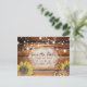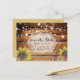 Este cartão postal de salvar a data rústico apresenta um fundo de tábua de madeira com bela caligrafia e girassóis vintage.