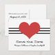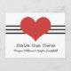 Cartão postal simples e encantador de Mod Heart Salve a Data com uma faixa tripla de listras e um coração encantador em vermelho. Este cartão postal de salve a data doce e minimalista é perfeito para anunciar um casamento moderno e elegante. Fácil de personalizar, basta adicionar os detalhes do seu casamento. Clique em "Personalize" para encontrar opções adicionais de personalização.