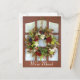 Linda foto de uma grinalda decorativa pendurada na porta. Nós nos mudamos em texto branco na parte inferior do cartão postal. Personalize todo o texto na frente e no verso para atender às suas necessidades.