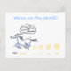 Cartões de mudança de endereço de desenho animado engraçados apresentam um cavalo fofo galopando pelo cartão. O texto na frente anuncia: "Estamos em MOVIMENTO!". Atrás: "...para o nosso NOVO ENDEREÇO em: " com espaço para seu endereço, telefone e uma nota. Por favor, confira meus outros cartões de anúncio de mudança engraçados abaixo, incluindo meu cartão de relocação de negócios e meu anúncio de casa nova para recém-casados.