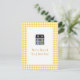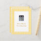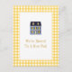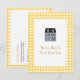 Um cartão postal de anúncio de mudança que ecoa aquele sentimento caloroso e caseiro usando um padrão gingham amarelo. Uma imagem de uma casa de bonecas é usada para fornecer uma referência irônica à sua nova casa. O padrão gingham é repetido no verso para compensar seu novo endereço e informações de contato. Você também pode personalizar isso para fazer um convite de festa de aquecimento da casa fofo. Disponível em cores alternativas com produtos correspondentes.